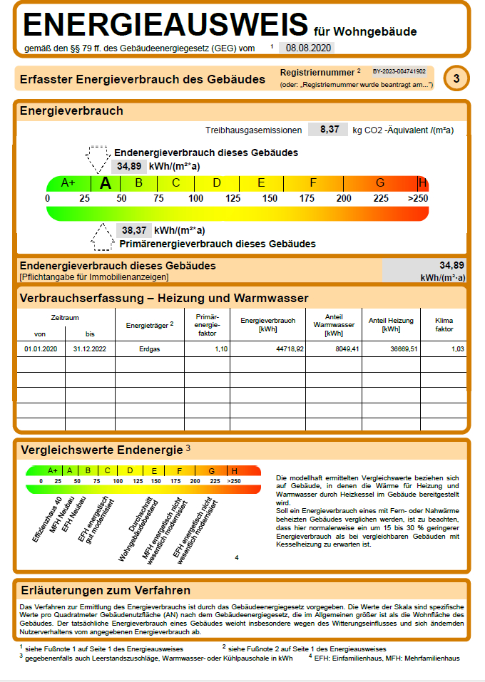 Endenergieverbrauch beträgt 34.89 kwh/(m²*a).
