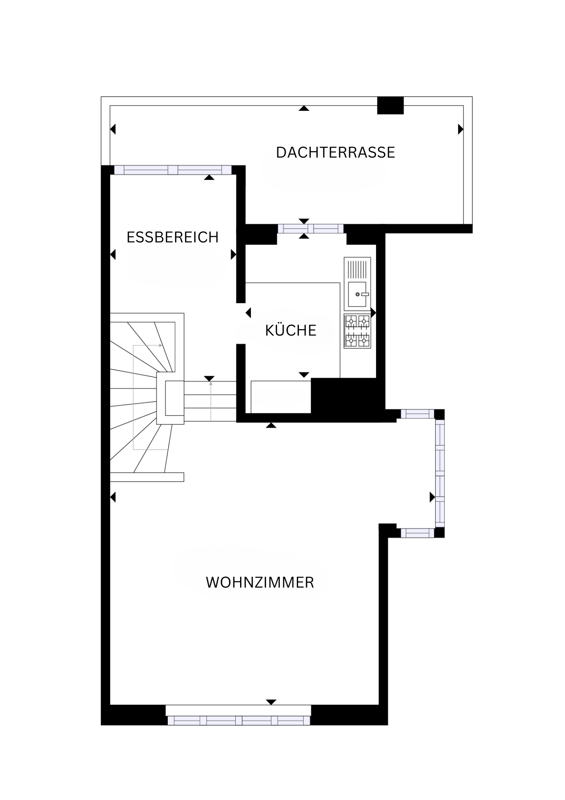 Das Dachgeschoss offenbart sich als Herzstück und Krönung dieser Immobilie. Ein großzügiger, heller, nach Süden ausgerichteter Wohn- und Essbereich mit hochwertigem Parkettboden und hohen Decken bis unters Dach, schafft eine tolle Wohlfühlatmosphäre. Die separate Küche, mit Glasschiebetür, bietet den perfekten Rahmen für kulinarische Entdeckungen. Die teilweise überdachte Süd-Dachterrasse lädt ein, die Sonne zu genießen und die Seele baumeln zu lassen.