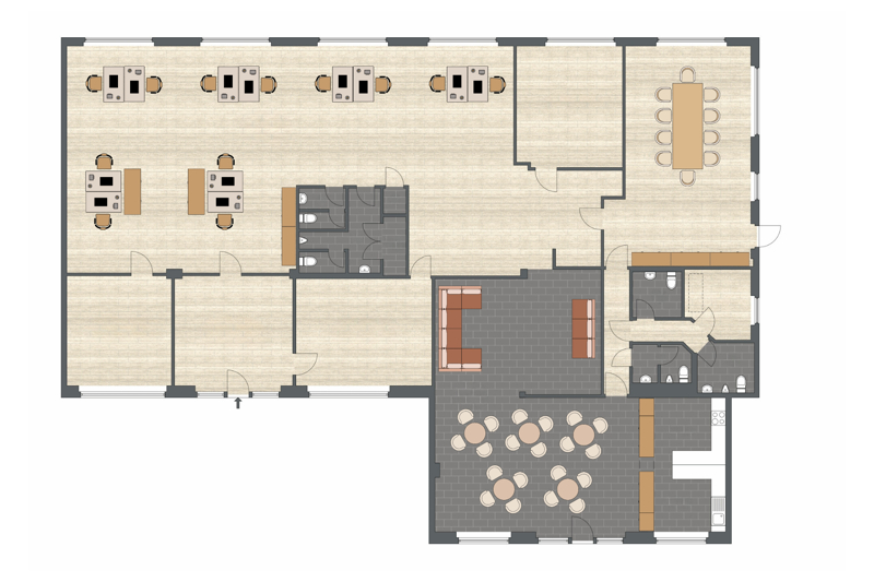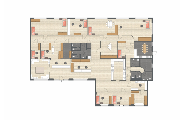 + Möglichkeit der Mitbestimmung der Boden-, Wand- und Deckengestaltung in Material, Oberfläche und Farbe