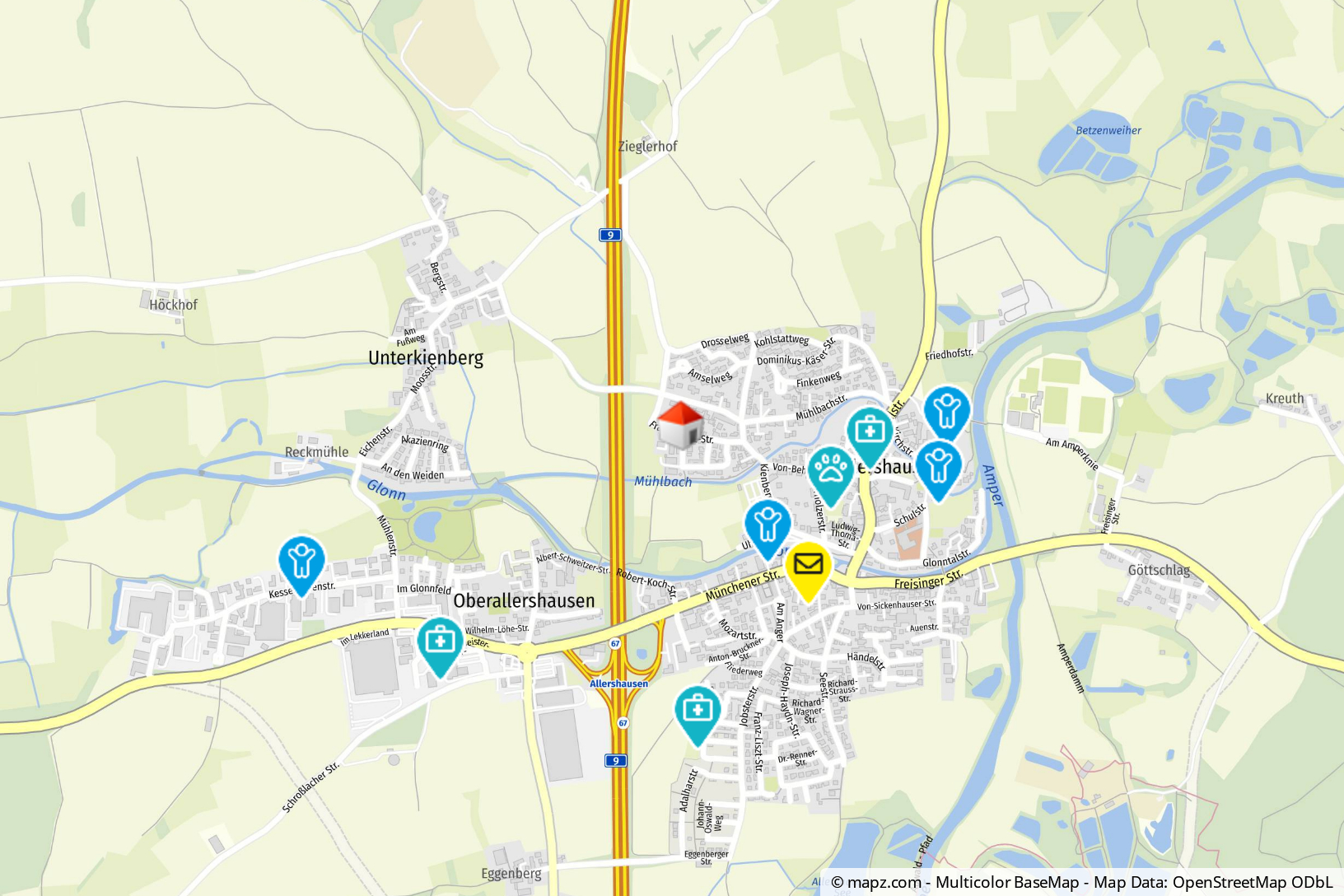 Allershausen, mit seinen rund 5.000 Einwohnern, zeichnet sich durch eine ausgezeichnete Infrastruktur in einer attraktiven Umgebung aus. Die Anbindung an die A9 ermöglicht es, München, den Flughafen, Pfaffenhofen und Ingolstadt schnell zu erreichen. Freising ist sogar in nur 15 Minuten erreichbar.